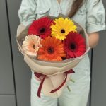 Писташ – 1 шт. Оформление – 1 шт. герберы – 5 шт.