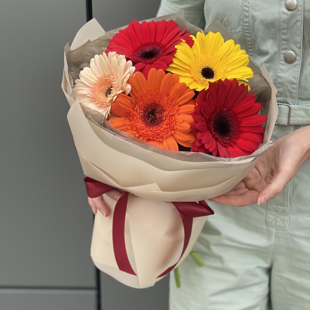 Букет из 5 гербер в оформлении!