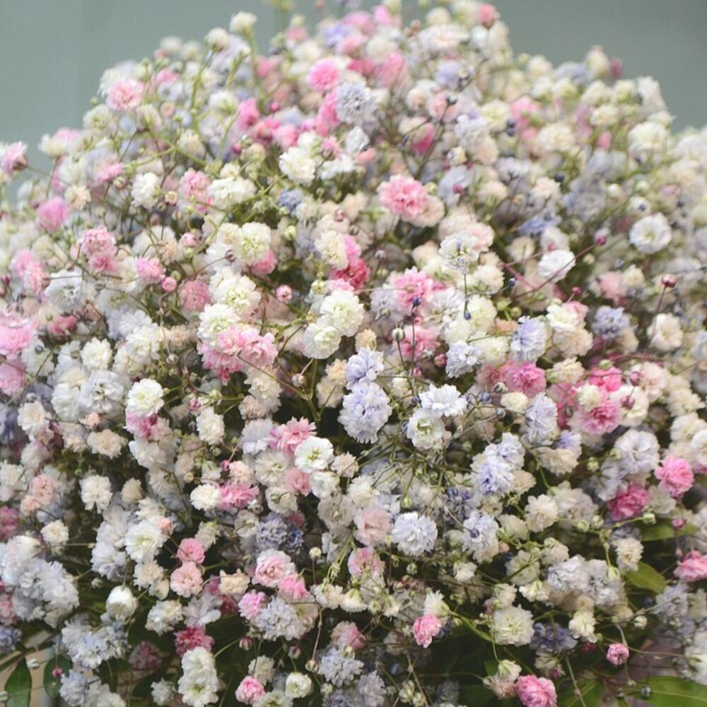 “Сиреневый туман” – композиция из гипсофилы в шляпной коробке