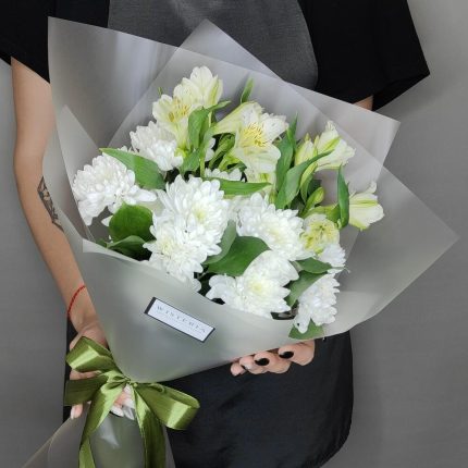 Альстромерия – 11 шт.Гипсофила – 2 шт.Лента атласная – 1 шт.Упаковка матовая – 1 шт.