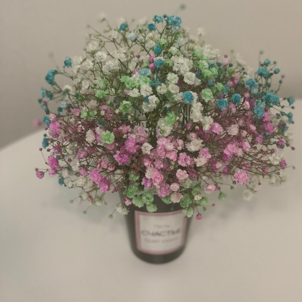 Комплимент из яркой гипсофилы в стаканчике «Счастье»