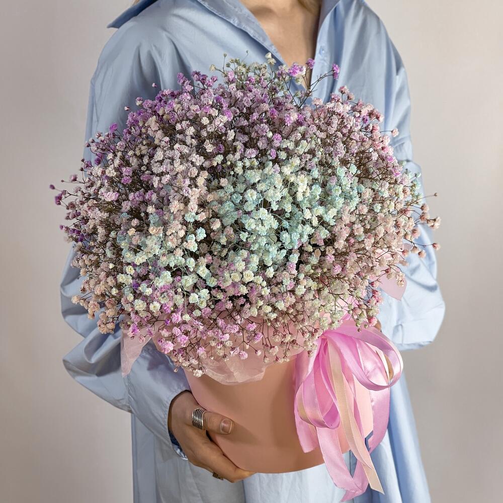Композиция с радужной гипсофилой “Нежные объятия XXL”