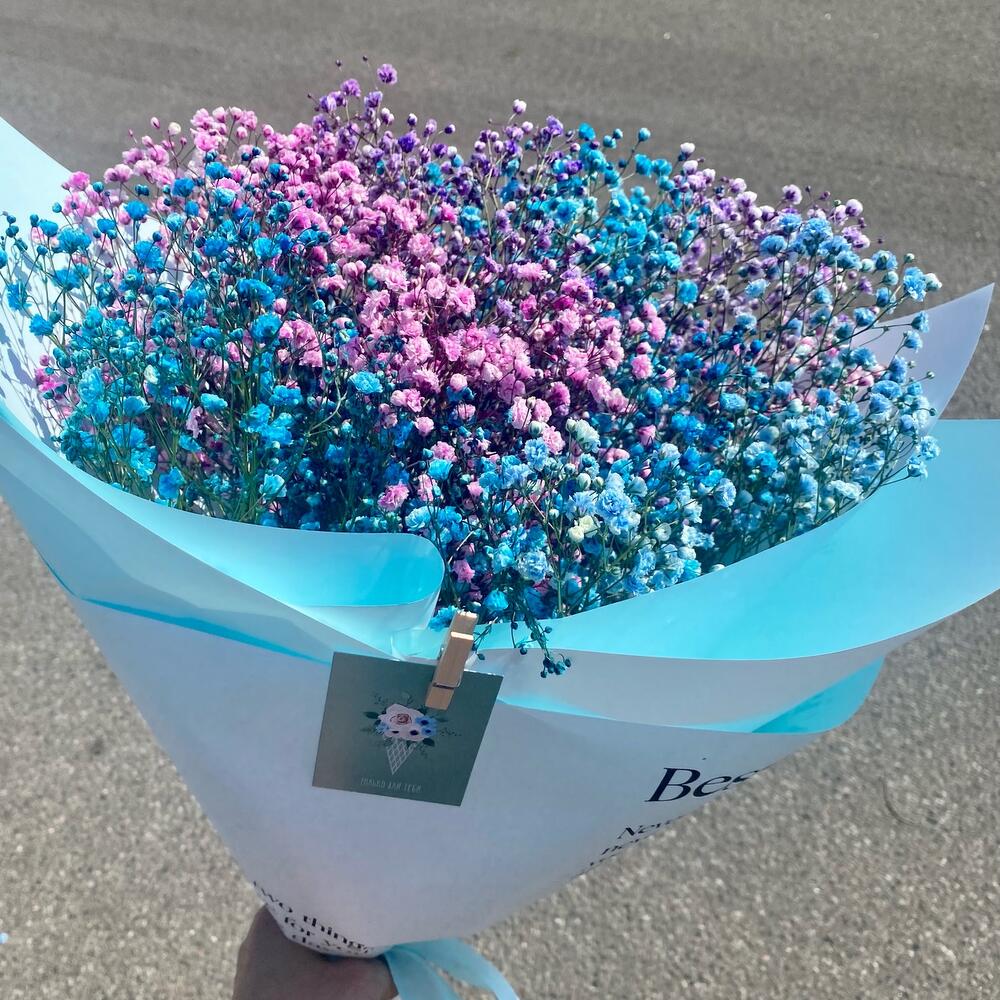 Монобукет из крашеной гипсофилы