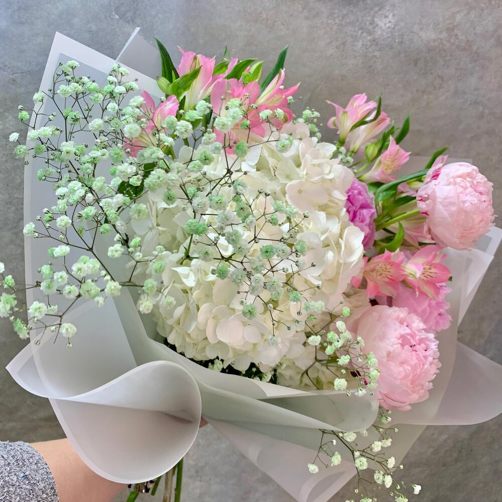Категории: Альстромерии, Гипсофила, Гортензии, Пионы
