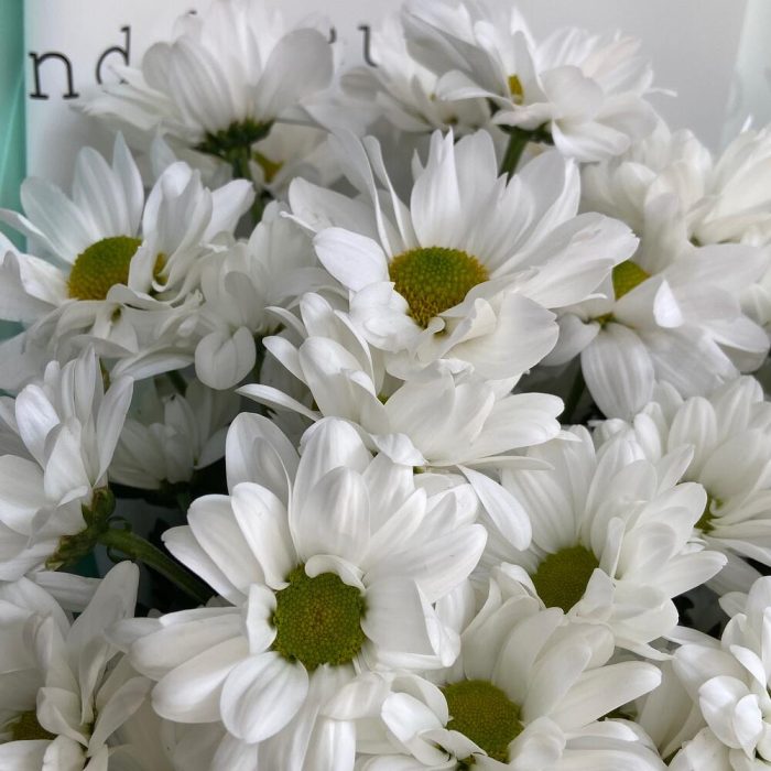 Лента атласная – 2 шт.Хризантема Ромашковая – 13 шт.Фоамиран (упаковка) – 4 шт.подложка бумажная – 2 шт.
