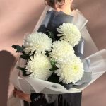 Лента атласная – 2 шт.Тишью – 2 шт.Хризантема Антонов – 5 шт.Пленка матовая – 2 шт.