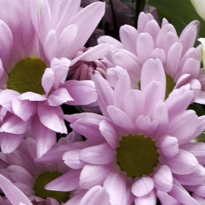 Альстромерия – 4 шт.Лента атласная – 1 шт.Упаковка дизайнерская – 1 шт.Хризантема кустовая цветная – 5 шт.
