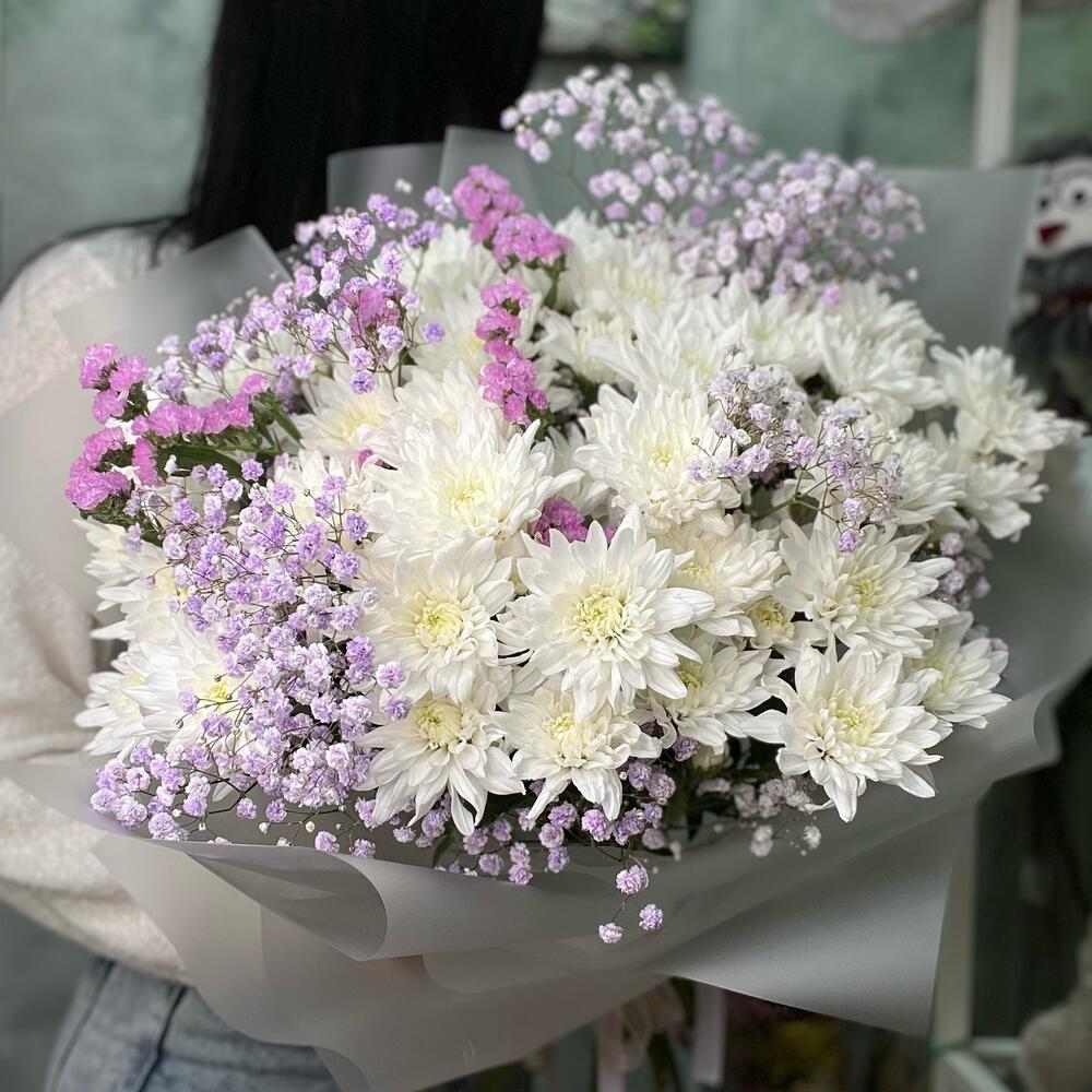 Нежная хризантема в облачке гипсофилы