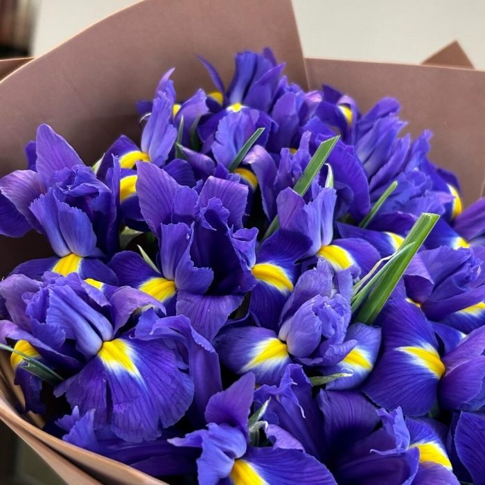 Букет из 21 фиолетового ириса в упаковке