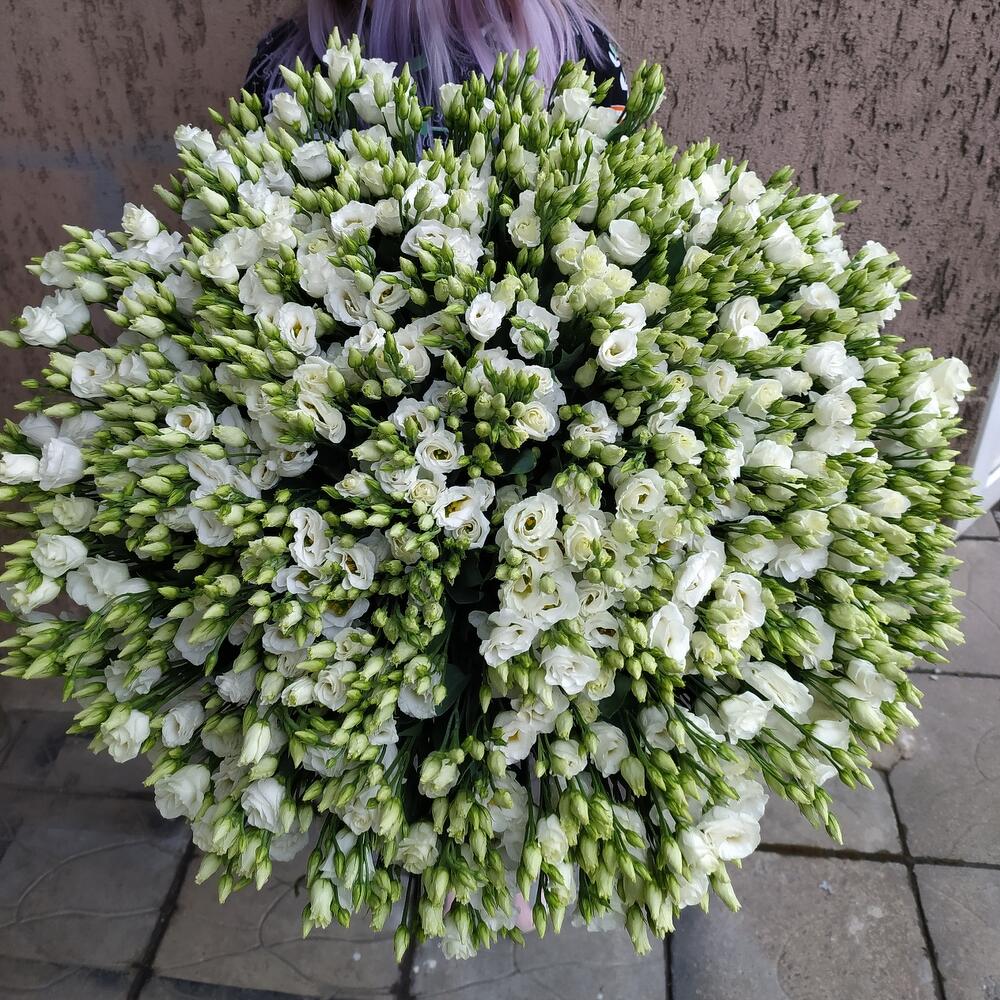 эустома белая – 101 шт.Упаковка – 1 шт.Лента атласная – 1 шт.