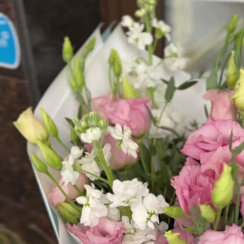 Букет с маттиолой и лизиантусом