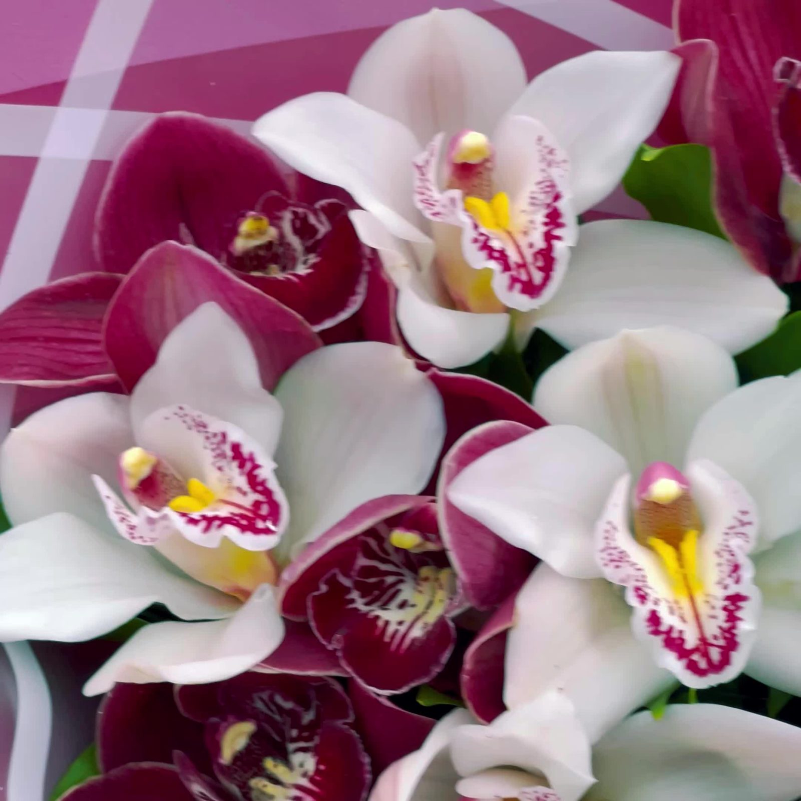 Орхидея Цимбидиум – 15 шт.Рускус – 15 шт.Лента атласная – 1 шт.Упаковка дизайнерская – 5 шт.удлинитель для орхидеи – 15 шт.