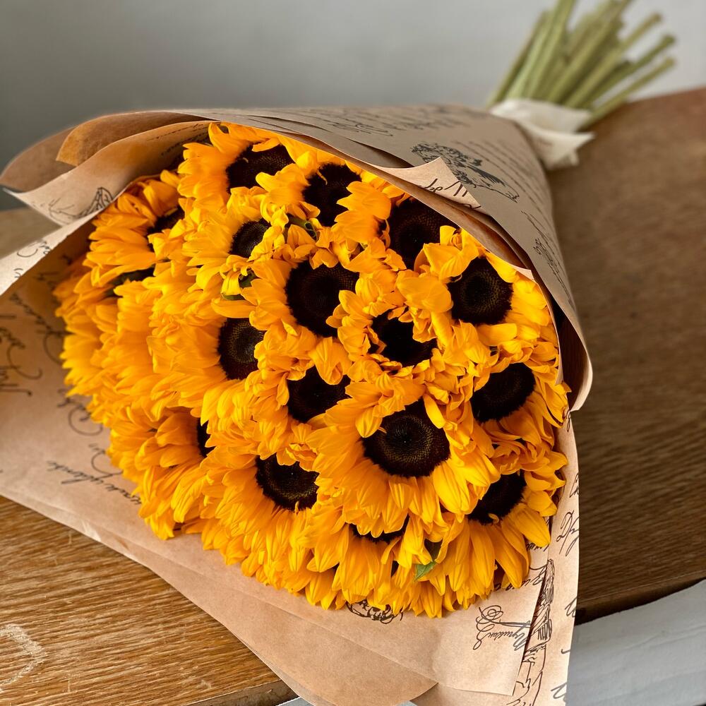 25 подсолнухов в крафте