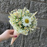 Цветы в рожке на цепочке с ромашками и колосьями пшеницы