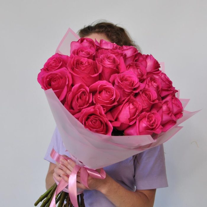 роза эквадор Pink Floyd 60 см – 25 шт.Пленка матовая – 3 шт.Лента атласная – 1 шт.конверт с инструкцией по уходу – 1 шт.Прикормка для цветов – 1 шт.