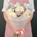 white o’hara роза – 7 шт.Озотамнус – 3 шт.Эвкалипт – 3 шт.бумага дизайнерская – 5 шт.Лента атласная – 1 шт.