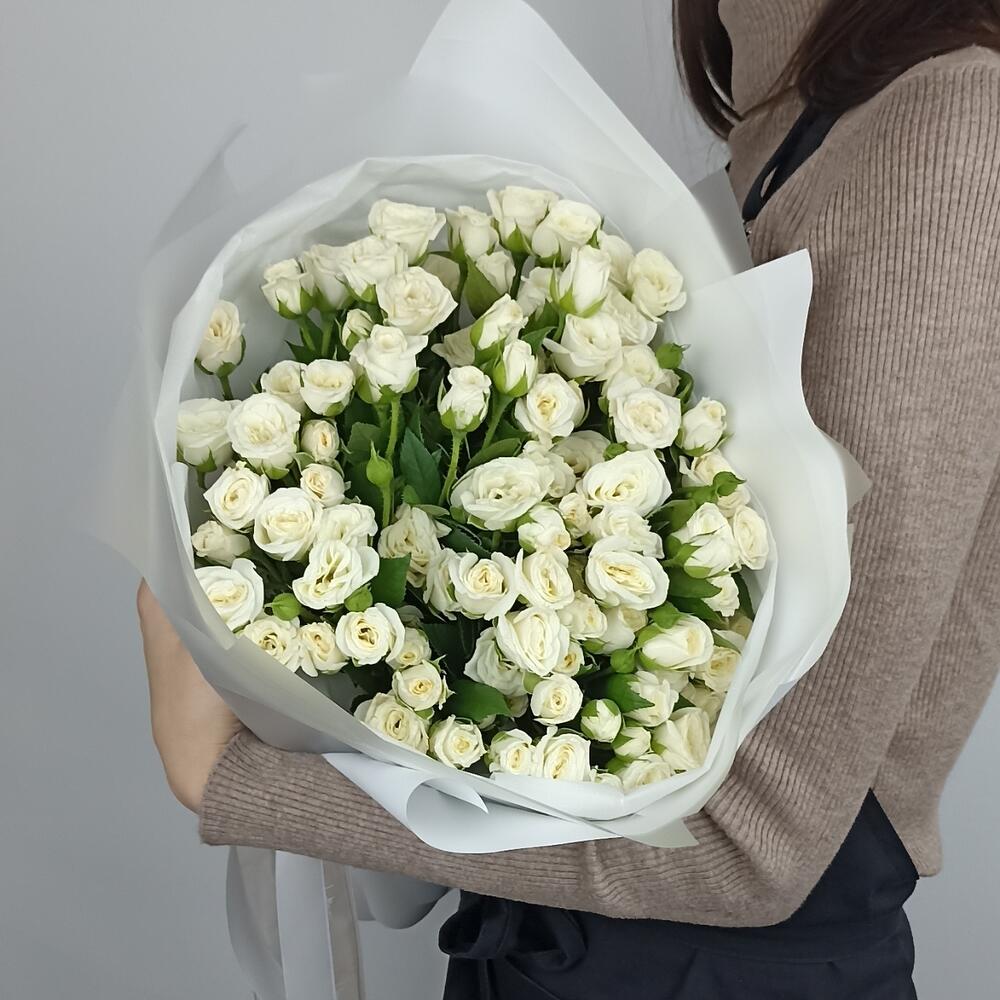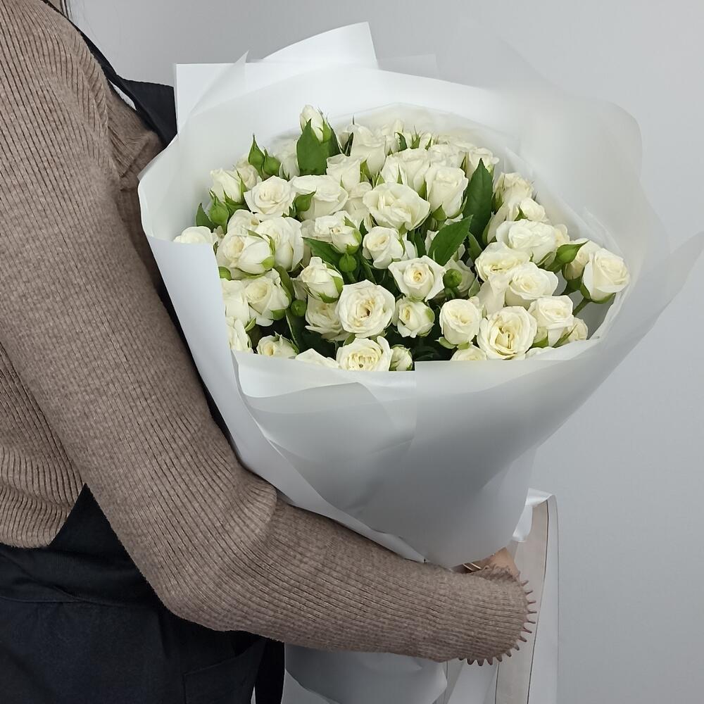 Роза кустовая – 17 шт.Пленка матовая – 2 шт.Тишью – 4 шт.