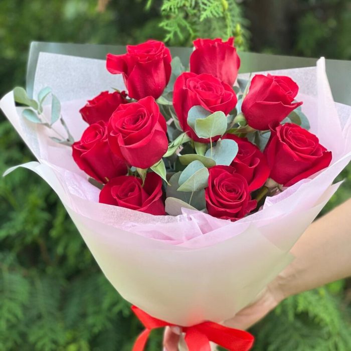 Букет из 11 Роз с эвкалиптом