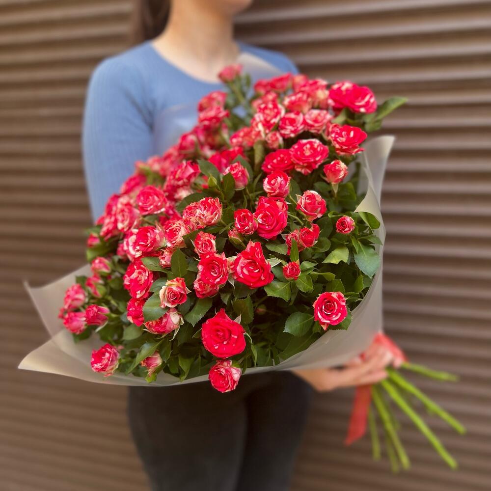 Букет из 15 ярких кустовых роз (моно 052)