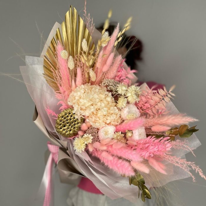 Букет из сухоцветов «розовое золото»