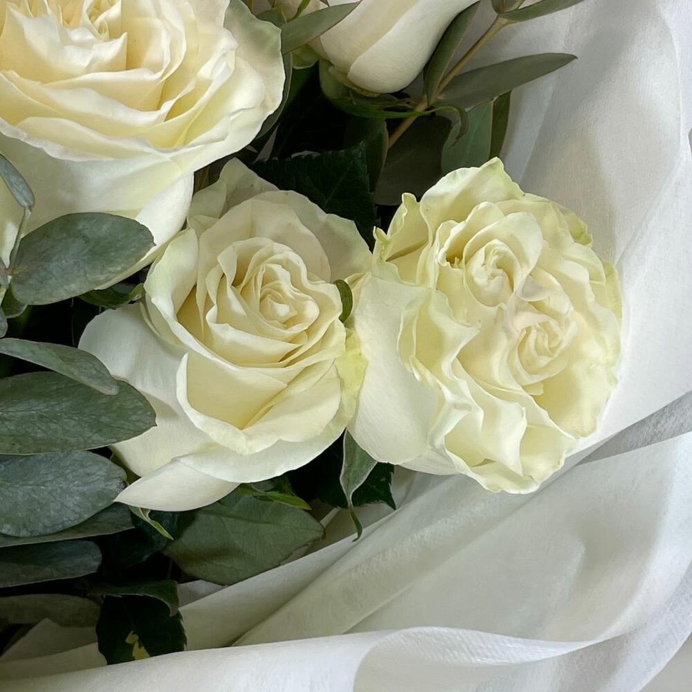 Лента – 2 шт.Эвкалипт – 2 шт.Роза – 11 шт.Упаковка – 2 шт.