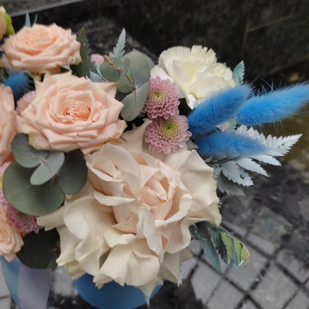 Воздушная цветочная композиция в шляпной коробке для вас и ваших близких☁️(При заказе просьба обратить внимание на размер товара)