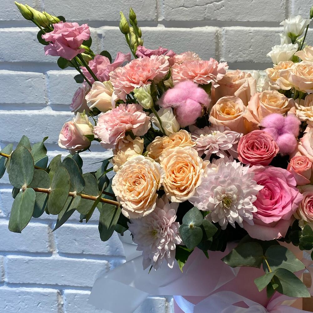 Кустовые розы, Лизиантусы, Пионы, Розы, Хризантемы