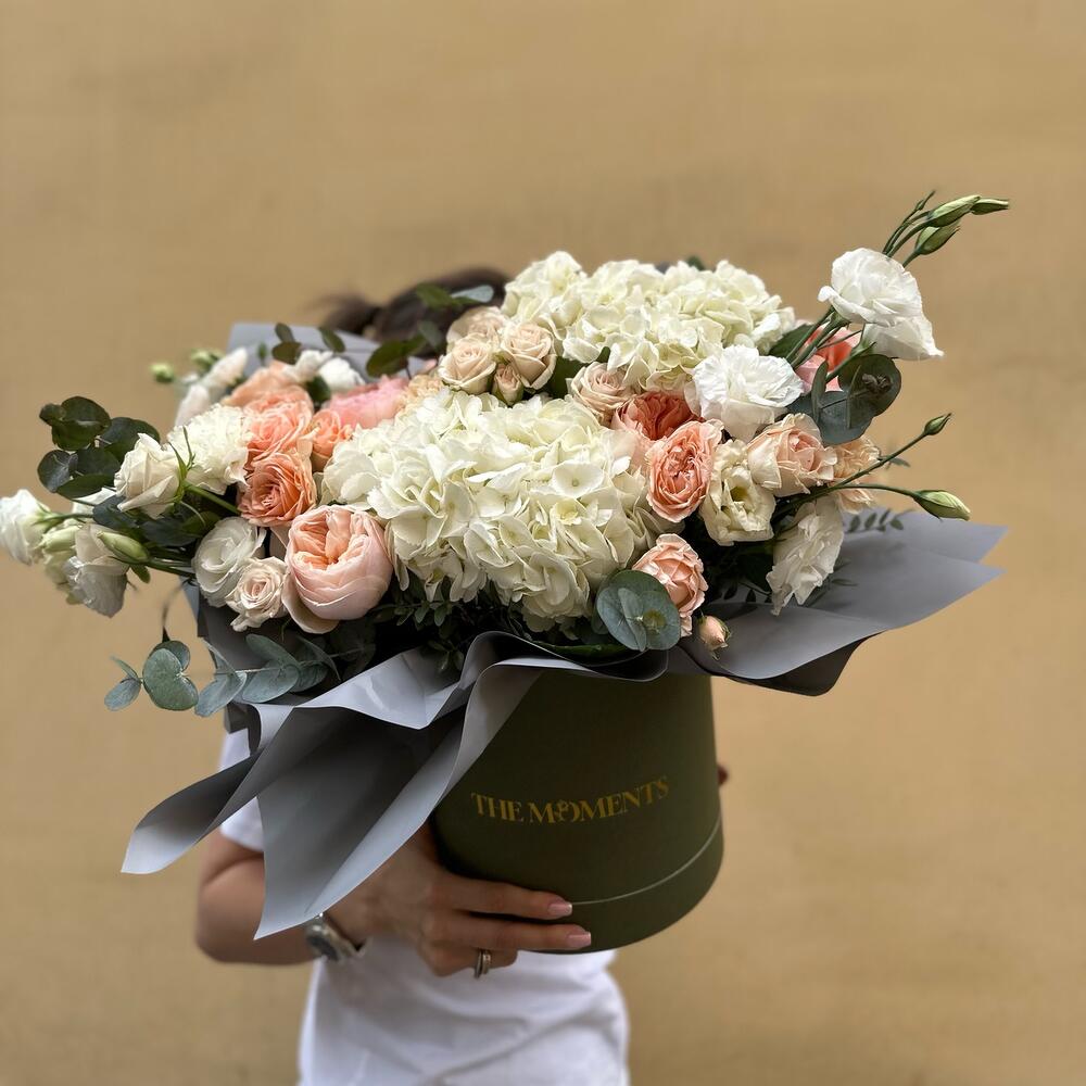 "Атлас☁️" - цветочная композиция с зефиром в деревянном ящике