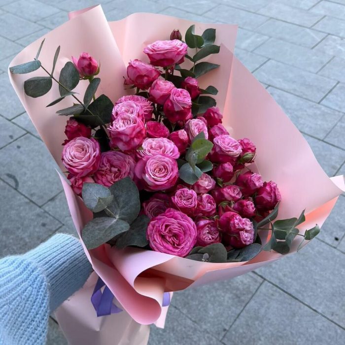 кустовые пионовидные розы ж – 13 шт. Упаковка дизайнерская – 1 шт. Открыточка с вашими пожеланиями – 1 шт. инструкция по уходу за цветами – 1 шт.