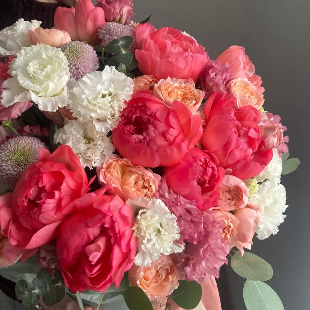 Коралловые сады букет из пион видной
