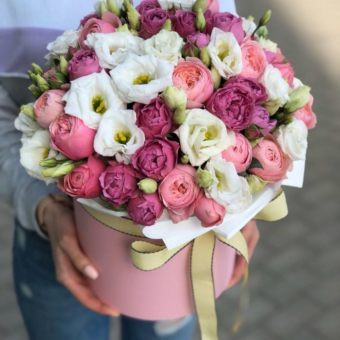 Коробка из пионовидных роз и эустомы!