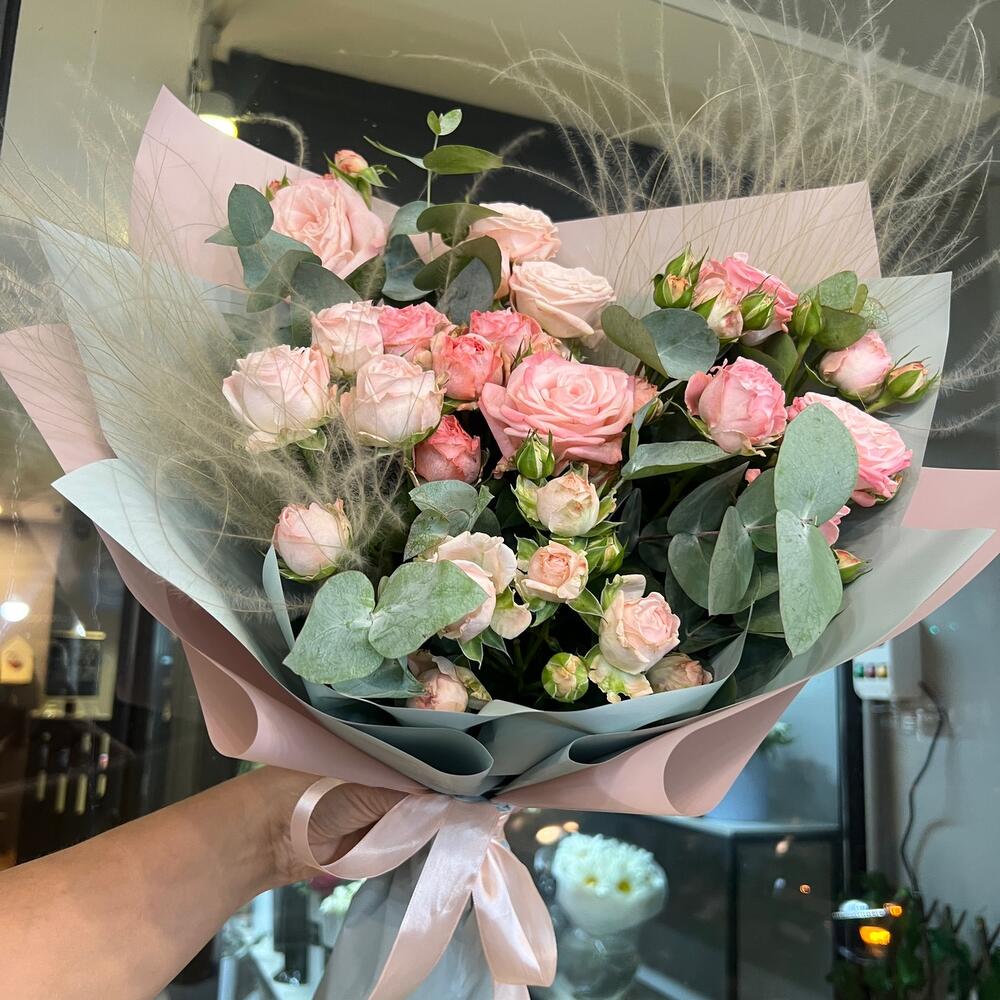 Альстромерии, Кустовые розы, Лизиантусы, Пионовидные розы, Розы, Ромашки