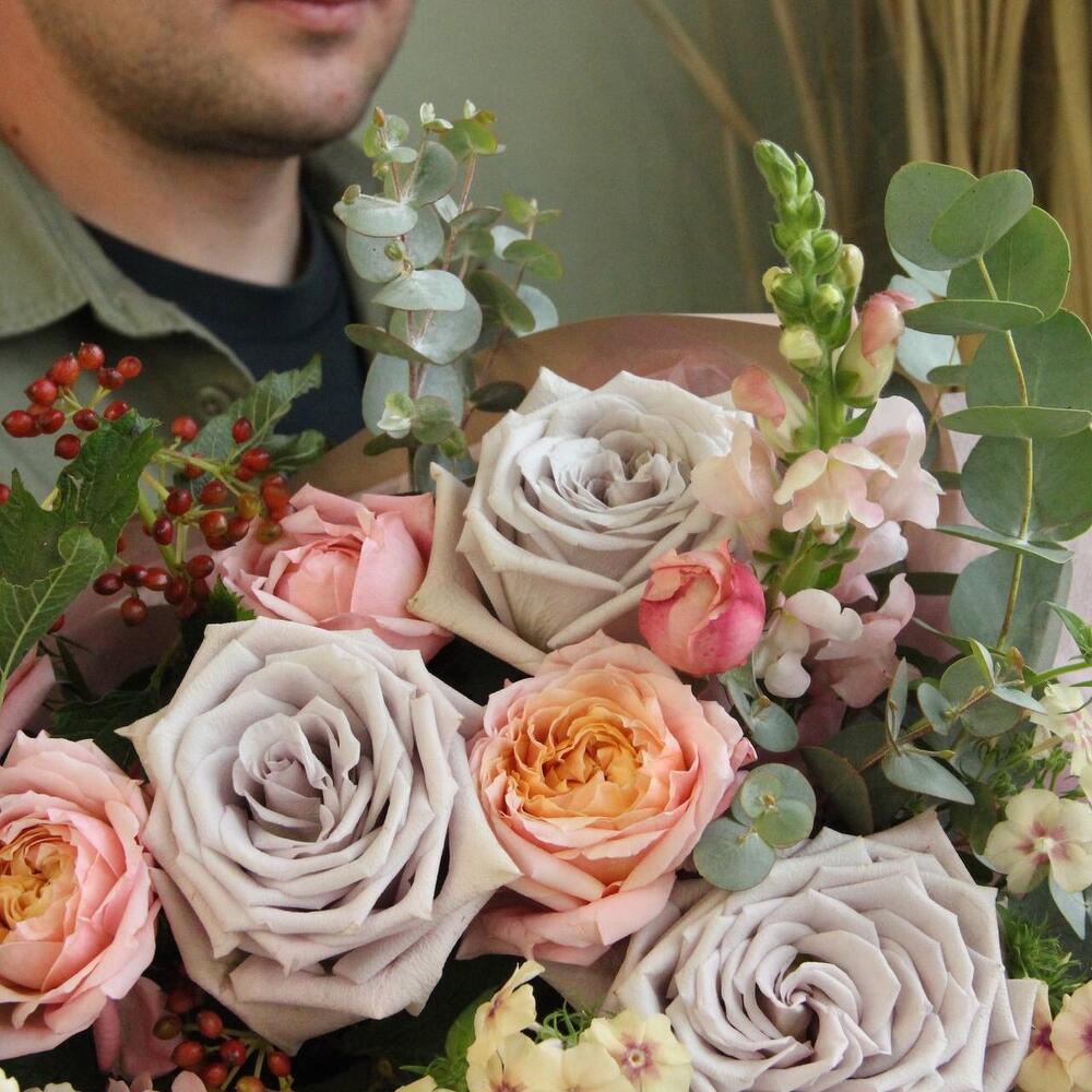 Кустовые розы, Пионовидные розы, Розы, Сухоцвет, Тюльпаны