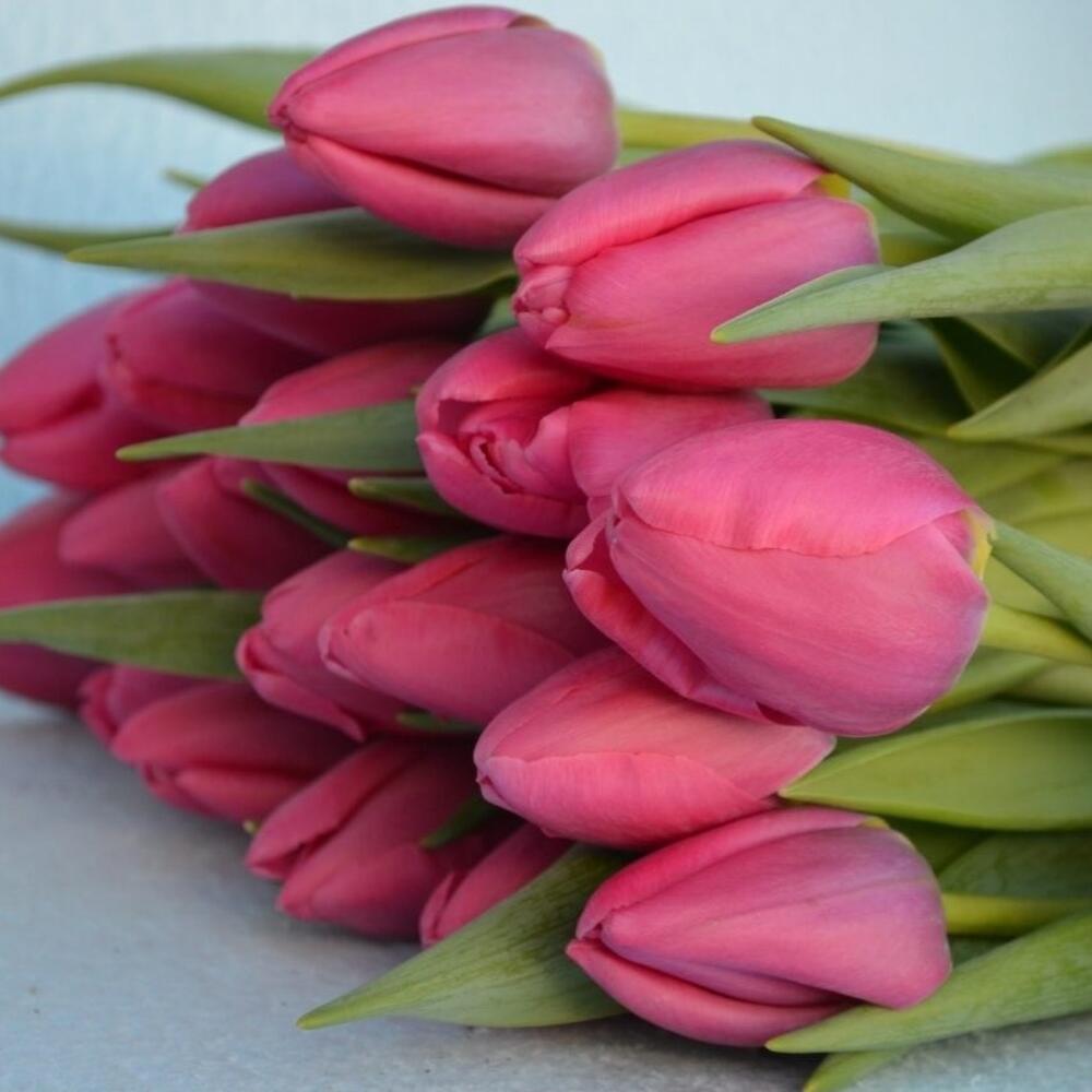Букет из ярких 25 розовых тюльпанов